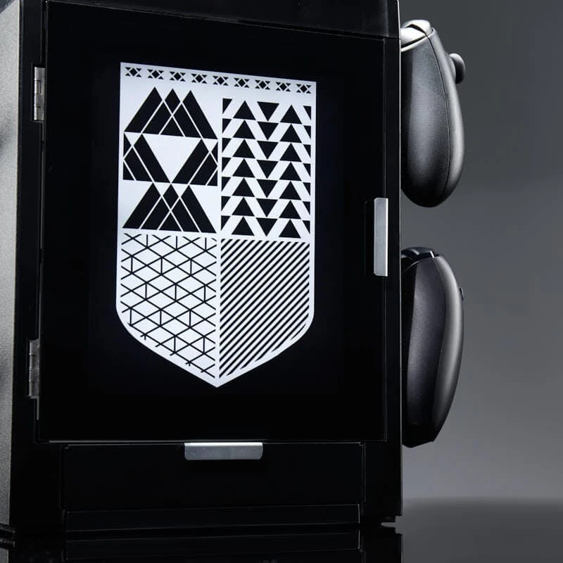 Simply press a button and prepare to be amazed by the illuminated Guardians’ Crest featured on the front, which can be changed to a new colour by simply touching the handle.Â