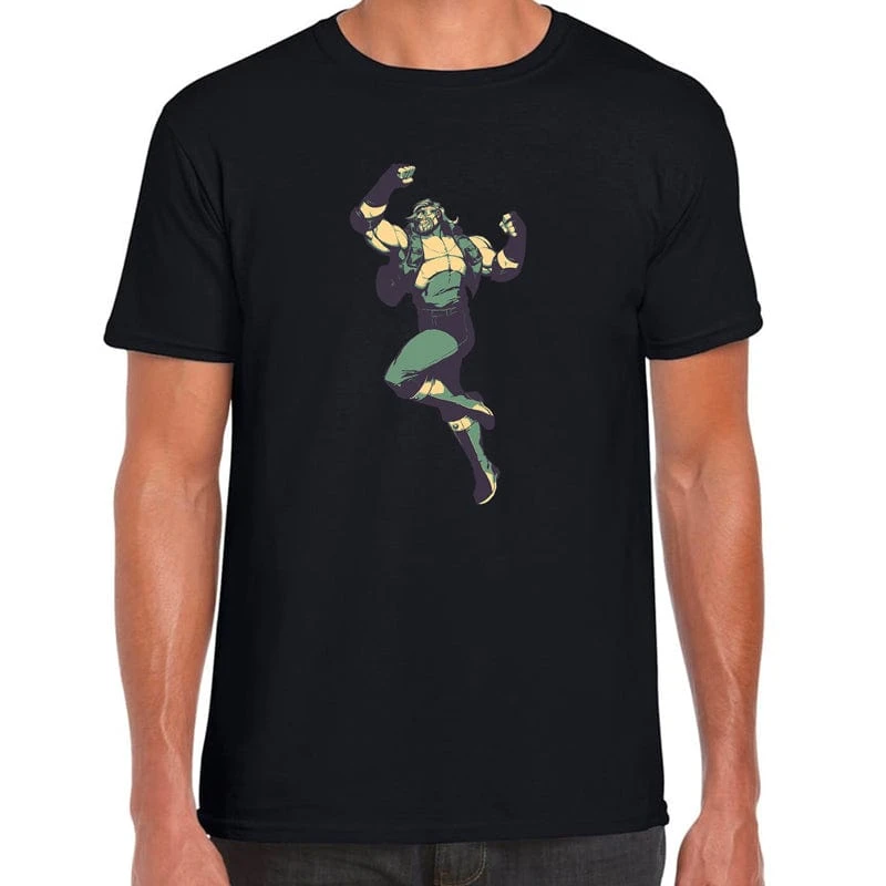 Equal parts buff brute and refined athlete, his hefty figure towers over his enemies. Dropkicks, spinebreakers, clotheslines, suplexes and elbow drops – there’s no separating Miller from his wrestling roots.