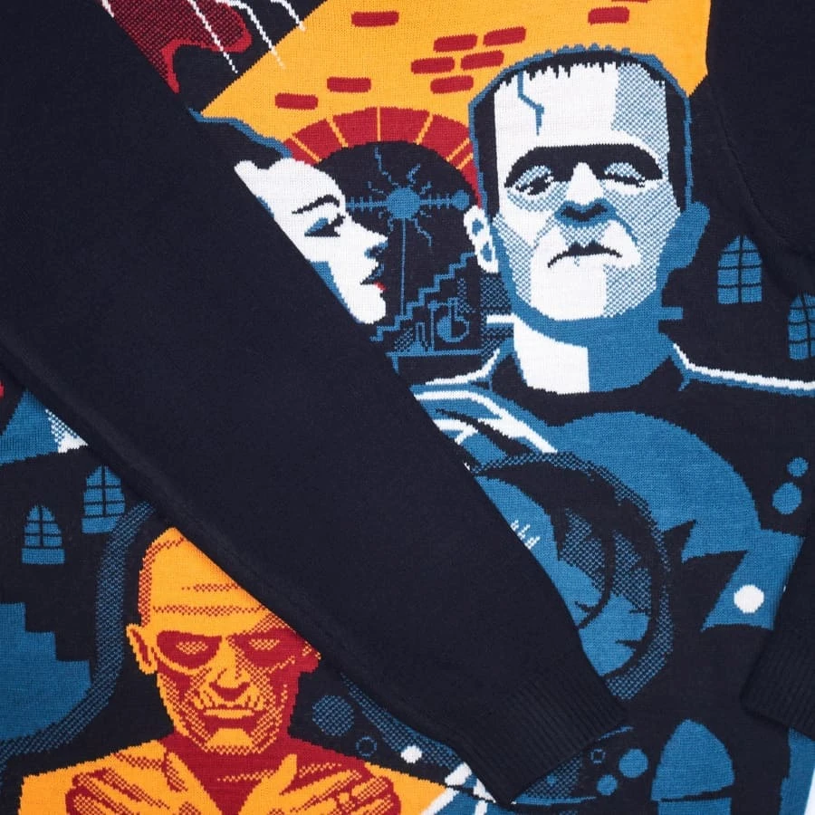 Looking to add that extra fear factor to your Halloween? Say no more—this cool jumper does the job! Keep in good company this Halloween as this spooky high-quality sweater features the most iconic group of monsters: Frankenstein’s creature, a Mummy, a Creature from the Black Lagoon, and Frankenstein’s wife. This jumper is sure to make you the talk of any Halloween party you attend!