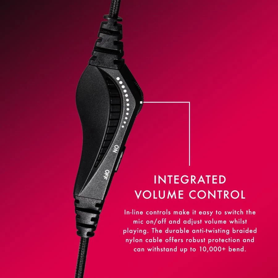 - In-line volume adjuster for ease of use, plus mic ON/OFF switch.