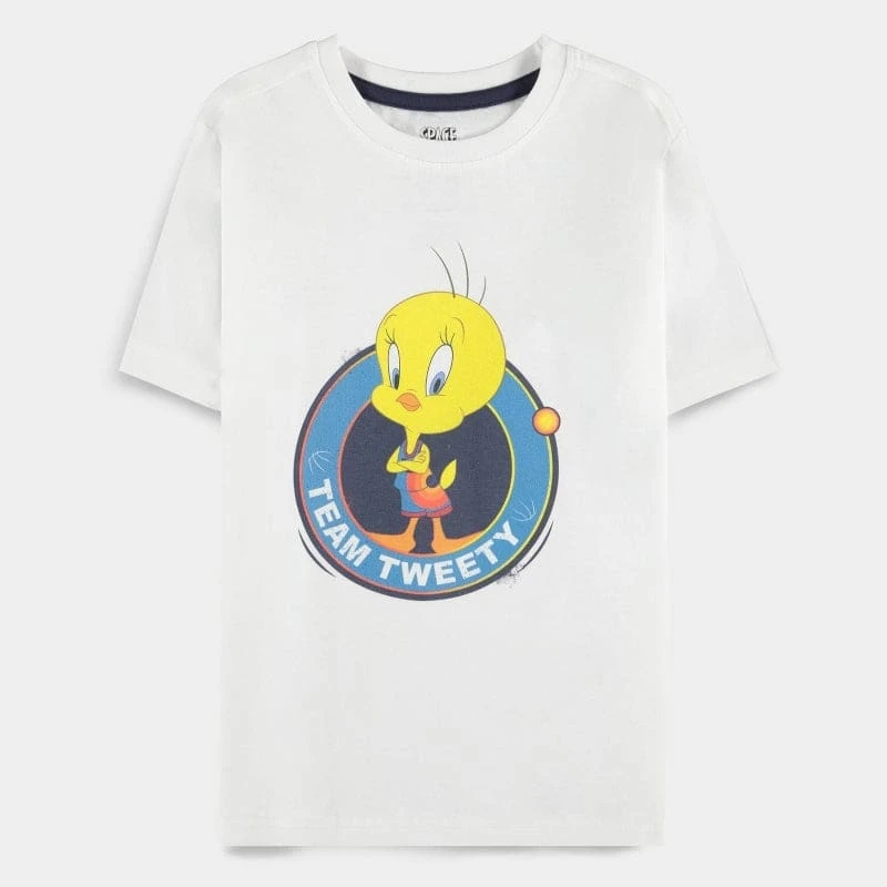 Represent the adorable Tweety with this fashionable official Warner Bros. Space Jam t-shirt featuring a charming design of the mischievous little bird himself!Officially licensed Space Jam product.Made from 100% premium cotton.Available in sizes 3-4 Years – 13-14 Years.